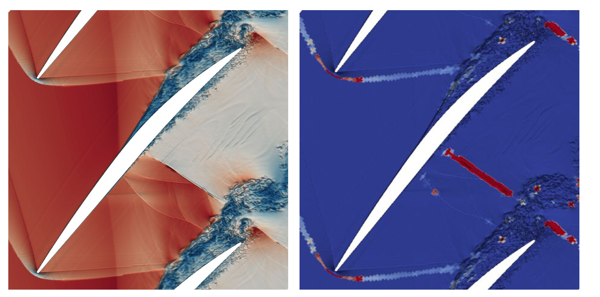 Abstract Modern high-order discretizations bear considerable potential for the exascale era due to their high fidelity and the high, local computational load that allows for computational efficiency in massively parallel simulations. To this end, the discontinuous Galerkin (DG) framework FLEXI was selected to demonstrate exascale readiness within the Center of Excellence for Exascale CFD (CEEC) by simulating shock buffet on a three-dimensional wing segment at transsonic flight conditions. This paper summarizes the recent progress made to enable the simulation of this challenging exascale problem. For this, it is first demonstrated that FLEXI scales excellently to over 500 000 CPU cores on HAWK at the HLRS. To tackle the considerable resolution requirements near the wall, a novel wall model is proposed that takes compressibility effects into account and yields decent results for the simulation of a NACA 64A-110 airfoil. To address the shocks in the domain, a finite-volume-based shock capturing method was implemented in FLEXI, which is validated here using the simulation of a linear compressor cascade at supersonic flow conditions, where the method is demonstrated to yield efficient, robust and accurate results. Lastly, we present the TensorFlow-Fortran-Binding (TFFB) as an easy-to-use library to deploy trained machine learning models in Fortran solvers such as FLEXI.